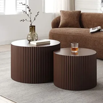 Show more Introducing the Kevinplus Round Nesting Coffee Table Set of 2 – a perfect blend of modern elegance and functionality that will elevate any space in your home! Made with a luxurious wooden structure and meticulously crafted with embossed lines, these tables make an eye-catching addition to your living room, office, or balcony. With five gorgeous colors to choose from, you can easily match them to your existing decor. Best of all, there is no assembly required; simply take them out of the box and place them wherever you like. Whether you need a coffee table, side table, or end table, this versatile set has got you covered.