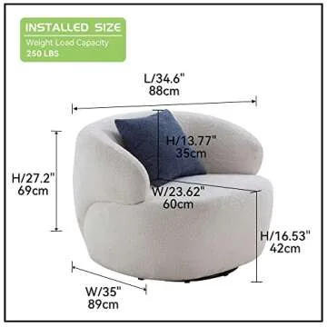 Show moreIntroducing the KEVINSPACE Swivel Accent Chair—where style meets ultimate comfort! This stunning 360° swivel barrel chair presents a sophisticated addition to your décor, offering versatile use in bedrooms, living rooms, offices, and even hotel lounges. Crafted with a sturdy swivel base, this chair not only adds a touch of elegance but also enhances functionality. Imagine lounging in a space that melds comfort with chic design, making it the perfect spot for relaxation and style.