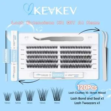 KevKev Lash Extension 120Pcs Clusters, Bond and Seal - DIY Natural 10-16mm D Curl Cluster Lashes Kit With Applicator for Eyelash Extensions (Ocean, 10-16mix)