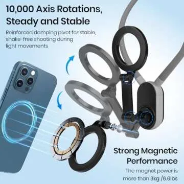 Keweis Magnetic Neck Phone Holder Cell Phone Mount, Hand Free POV/Vlog Flexible Phone Neck Holder Around Chest Stand Video Recording Fit for iPhone 15 14 13 12 Pro Max Plus Mini (Grey)