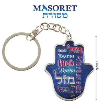 Key Holder Hamsa Shape 5cm - Mazal with Hebrew Travellers Prayer
