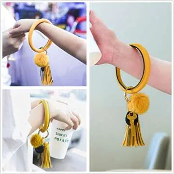 Keychain Bracelet,Key Ring Bracelet,Keychain Bangle,Wrist Bangle Key Chains for Women Girls PU Leather Tassel