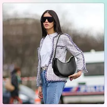 Keyli Women's Fashion Shoulder Bag, Black, Leather, 11.8" x 2.3" x 8"