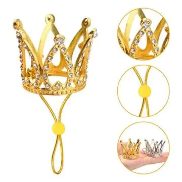 Show moreDiscover the enchanting world of pet fashion with the **Keymall 4 Pieces Mini Crown** designed exclusively for your small animal companions. Whether you have a charming guinea pig, a playful hamster, or even a regal lizard, these crowns are the perfect accessory to make them look adorable for any special occasion. Available in shimmering **gold** and **silver**, each crown measures **3.2 cm in diameter** and **3.5 cm in height**, ensuring a comfortable fit for your furry or scaly friends. Crafted with an **adjustable elastic chin strap** that matches the crown, these hats are easy to put on your pets securely, allowing for a hassle-free photo shoot or party participation.