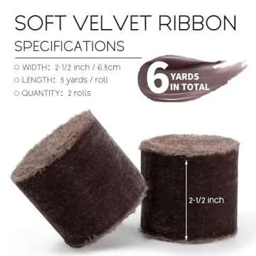 Show more Introducing the exquisite 2-1/2 inch velvet ribbon set, a must-have for anyone who appreciates beauty and craftsmanship in their creative projects. Each set consists of two rolls, boasting a total of 6 yards, which is perfect for various applications such as gift wrapping and crafting. The frayed velvet ribbon features a slightly glossy surface that changes its hue with the light, adding an elegant touch to any decor. Soft to the touch, with a plush texture, this ribbon easily elevates the aesthetic of your gifts, making them look noble and sophisticated.
