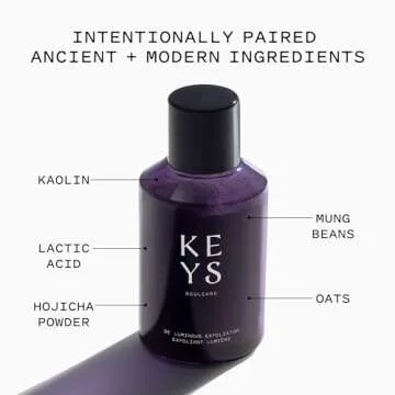 Keys Soulcare Be Luminous Exfoliating Powder, Gentle Foaming Exfoliator Buffs Away Dull Skin with Oats & Lactic Acid, Vegan, Cruelty-Free, 2.29 Oz