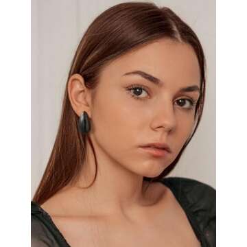 Show moreIntroducing the KeyStyle Chunky Gold Hoop Earrings, a stunning blend of boldness and elegance that every woman needs in her jewelry collection. Crafted with premium quality stainless steel, these earrings ensure a lasting shine and durability that won't tarnish over time. Their unique teardrop shape adds a modern twist to the classic hoop design, making them perfect for both casual outings and elegant occasions. With their lightweight construction, you can enjoy long wear without any discomfort, allowing you to express your style effortlessly throughout the day.