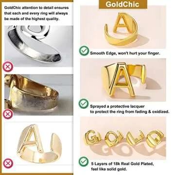 KeyStyle Gold C Initial Ring for Women, Adjustable Letter Alphabet Statement Rings Women’s Initials Ring for Rapper