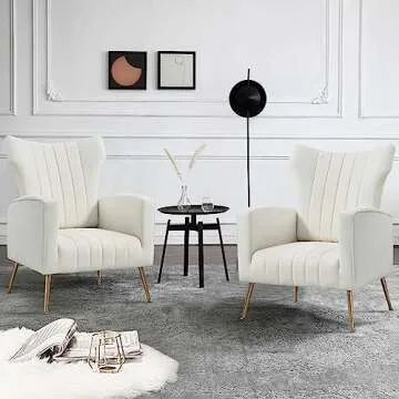Show moreIntroducing the KGOPK White Accent Chairs Set of 2, the perfect blend of elegance and comfort for your living space. These modern velvet wingback chairs are thoughtfully designed to enhance your home decor while providing unmatched relaxation. Upholstered in luxurious soft velvet with a high resilient density sponge filling, these chairs create a cozy environment where you can unwind after a long day. The wingback design not only adds a touch of sophistication but also cradles your body, allowing you to sink into its plush embrace. Ideal for your living room, bedroom, or study, this set of accent chairs is truly a centerpiece of style and comfort.