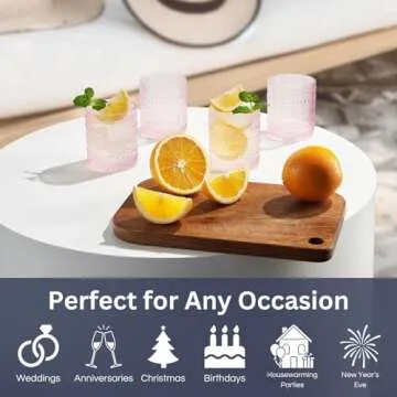 Khen Hobnail Beaded Highball Drinking Tumbler Glasses | Set of 6 | Pastel Pink Color, Vintage Bubble Design Whiskey Glassware, Rocks Glasses