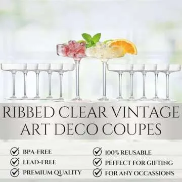 Khen Ribbed Vintage Art Deco Coupe Glasses - Perfect for Cocktails & Celebrations