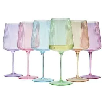 Show moreIntroducing the stunning Khen Ripple Bright Colored Wine Glasses – a set of six beautifully crafted ribbed crystal fluted glasses designed to elevate your dining experience. Perfectly styled for any occasion, these elegant glasses hold a generous capacity of 19 ounces, making them ideal for both red and white wines. Their unique ribbed design not only adds a chic visual flair but also offers a satisfying tactile experience, ensuring that your wine sipping is as delightful as it is stylish.