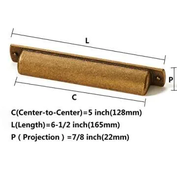 Show moreTransform your living spaces with the elegant charm of the Khtumeware 6 Pack 5" Vintage Drawer Pulls. Designed meticulously from high-quality zinc alloy, these antique brass cabinet pulls exude a timeless appeal suitable for any interior decor. Each pull measures 5 inches (128mm) center-to-center, offering the perfect balance of style and functionality for your cabinets, dressers, and drawers. Crafted to last, the sturdy construction ensures that these pulls withstand daily use while maintaining their sophisticated appearance. The aged gold bronze finish adds character and warmth to your furniture, making each pull a statement piece in your home.<\/p>