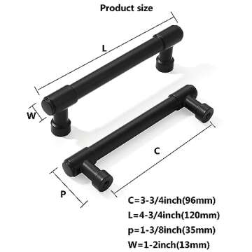 khtumeware Matte Black Cabinet Pulls - Center to Center 4" (Approx. 102MM) - Pack of 12 - Kitchen Handles for Cabinets Cupboard Handles Drawer Pulls