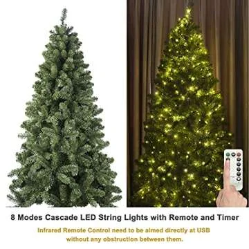 KI Store 7ft Christmas Tree with Decorations and Lights Remote and Timer Champagne Christmas Tree Decorations Including 7 Feet Full Tree, Ornaments, USB LED String Lights