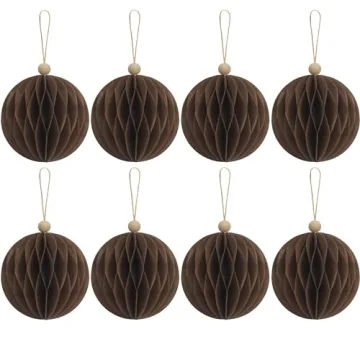 KI Store 8pcs Brown Paper Christmas Balls with Magnet Closure for Festive Decor
