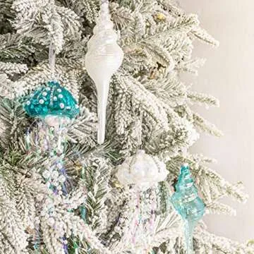 Show moreIntroducing the KI Store Coastal Ornaments for Christmas Tree, a stunning set of four decorative hanging ornaments that beautifully embody the essence of coastal charm. These exquisite jellyfish and seashell ornaments are crafted from high-quality glass, showcasing a dreamy palette of white and teal blue that perfectly enhances both coastal and pastel-themed decor. With each ornament measuring approximately 13 inches by 3.15 inches, they make a striking addition to your Christmas tree or window display, exuding an enchanting ocean-themed vibe.