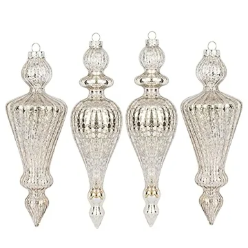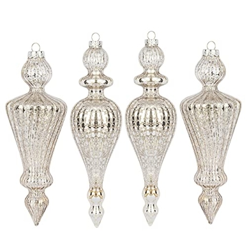 Each set includes 4 beautifully crafted vintage finials, featuring 2 elegant icicle designs, measuring 7 inches and 6.5 inches in height. Their sophisticated style seamlessly integrates with any color palette, from classic reds and greens to contemporary blush and champagne hues. Not only are they ideal for adorning your Christmas tree, but they also serve as stunning table centerpieces, enhancing your event's ambiance.
