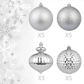 KI Store Silver Christmas Ball Ornaments, 20pcs 3.15-Inch, for Xmas Trees and Holiday Decor - Hooks Included