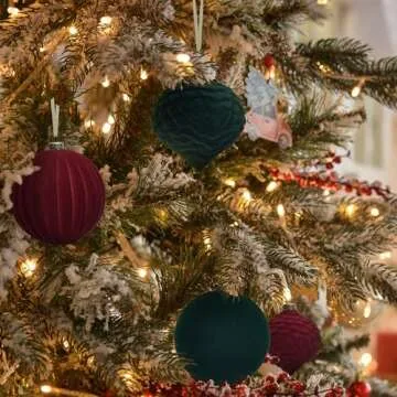 KI Store Velvet Christmas Balls Green 25pcs Flocked Christmas Tree Ornaments Assortment for Xmas Tree Holiday Decor