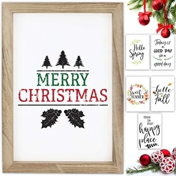 Show more Transform your home into a sanctuary of charm and warmth with our exquisite Rustic Wall Decor Set from Kibaga. Embrace the essence of each season with this beautifully designed set, which includes one large rustic wooden frame and 5 reversible prints showcasing 10 joyful artworks. These prints are perfect for all seasons—Spring, Summer, Fall, and Winter—allowing you to switch up the decor whenever the mood strikes. The vibrant colors and uplifting quotes on the prints are sure to bring a smile to your face and keep the good vibes flowing in your home.