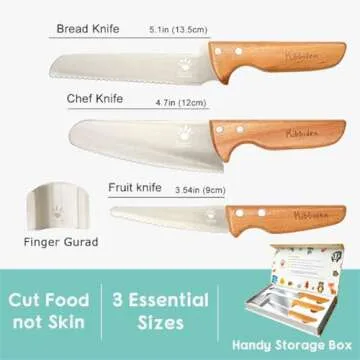 Kibbidea Kids Knife Set for Real Cooking, 4pcs Kids Safe Kitchen Cutting Knives, Stainless Steel Blades, Children First Starter knife, BPA-free (Silver)