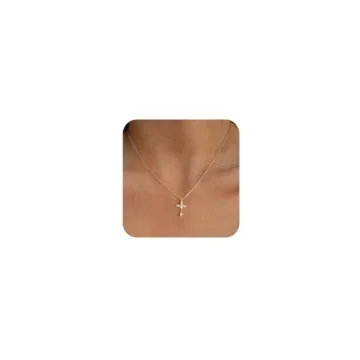 Show more The KICKGY Gold Necklace for Women is a stunning addition to any jewelry collection. This elegant piece features a beautifully crafted cross pendant that is adorned with sparkling AAAAA cubic zirconia, adding a touch of glamour and sophistication. The delicate chain, measuring 42cm (16.53 inches) with an additional 2-inch extender14k gold-plated brass, this necklace is designed not only to shine brightly but also to maintain its luster against tarnishing, making it ideal for daily wear.