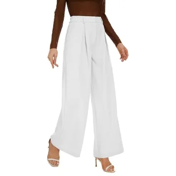 KICZOY Women Fall High Waist Casual Wide Leg Long Palazzo Pants Regular Work Long Trousers Suit Pants White