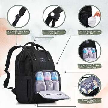 - Thoughtful Features: Dedicated pockets for wipes and insulated sections for bottles maintain temperature, adding to convenience.