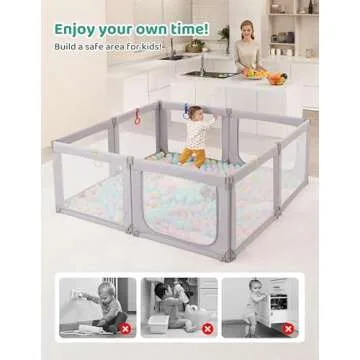 Kidirect Foldable Baby Playpen, 71"×69" Large Baby Playpen, Baby Play Pen with Upgrade Safety Gate, Playpen for Babies and Toddlers Ajustable Shape &Size, Indoor &Outdoor Portable Baby Play Yard, Grey