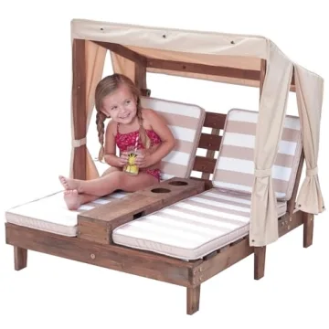 Show moreTransform your outdoor space into a delightful haven for kids with the KidKraft Wooden Outdoor Double Chaise Lounge. This charming piece of patio furniture is not just functional; it's designed to captivate both children and pet owners alike. Crafted with premium, durable wood that has been specially treated to repel water, this lounge offers exceptional longevity and remains a stylish focal point during family gatherings. The enchanting three-sided canvas awning provides ample shade, allowing your little ones to enjoy the sun safely—while adding a chic flair to your backyard. The lounge is perfect for relaxation and play, ensuring your kids create lasting memories.