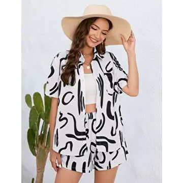Kidlove Two Piece Sets for Women Summer Casual Loose Fit Outfits Short Sleeve Button Down Shirts and Shorts Set with Pockets