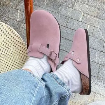 KIDMI Women's Suede Clogs Leather Mules Cork Footbed Sandals Potato Shoes with Arch Support Pink 36 (Size 5.5-6)