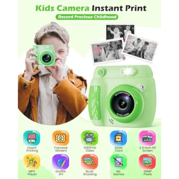 Show moreIntroducing the LETSAHA Instant Print Camera for Kids, the perfect gift that transforms young imaginations into instant creative memories! Designed specifically for ages 3-12, this camera offers a unique blend of photography fun and interactive play. With its ability to snap and print photos on the spot—no ink or toner required—children can capture moments and share them with friends in a safe, mess-free way. Available in a vibrant green color, its durable, lightweight design guarantees that it can withstand the adventures of curious little hands while still being portable enough for family trips or birthday parties.