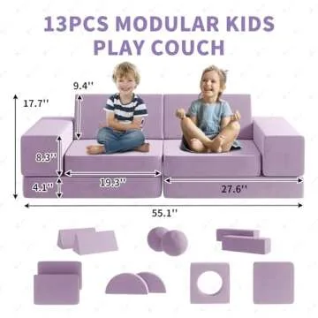 Show more Introducing the most versatile and fun addition to your child's playroom: a 12-piece modular kid's sofa from our specially designed collection. This innovative sofa can transform into a variety of structures, sparking creativity and imagination in your little ones. Not only can it be used as a traditional couch, but it can also be reimagined as a bowling lane, a football field, or even a pirate ship! With features that allow children to create over 30 different gameplay options, this sofa provides endless hours of entertainment.