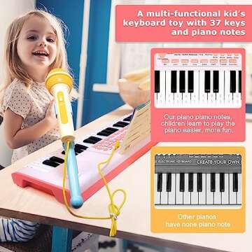 Introduce your child to the magical world of music with our Kids Keyboard Toy for Girls, a delightful pink mini piano designed specifically for budding musicians aged 3 and up. This electronic educational instrument features 37 keys, complete with music symbols that match corresponding digital music notes, allowing your little one to easily follow along with the included music book. The keyboard isn't just a toy; it’s a comprehensive learning tool! Children can explore their passion for...