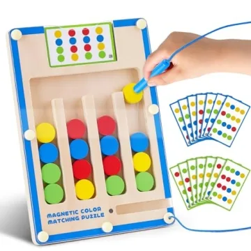 Introducing the Kids Montessori Magnetic Wooden Toys, an exceptional gift designed to engage and educate children aged 3-7 through fun, interactive learning! This beautifully crafted educational tool features a delightful color matching puzzle set, perfect for honing essential skills such as logic, color recognition, hand-eye coordination, and fine motor skills. Comprised of 20 double-sided cards, a magnetic pen, and 16 vibrant wooden pieces, this toy encourages children to think critically...