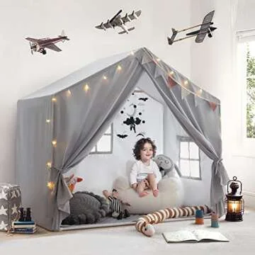 Kids Play Tent with Mat, Razee Large Playhouse Tent Indoor, Play House Kids Tent Castle Tent for Girls Boys, Play Cottage (Grey)