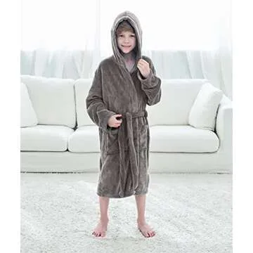Kids Robe Children's Winter Soft Plush Hooded Outdoor Bath Robe with Pockets,Grey,XL
