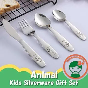 Kids Silverware Set Toddler Utensils 18/8 Stainless Steel 4PCS Fork Spoon and Knife Cutlery Child Flatware for Age 3+