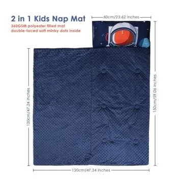 Show more Introducing our Kids Sleeping Bag Toddler Nap Mat with Removable Pillow, the perfect blend of comfort, style, and functionality designed specifically for little ones. Crafted from premium high-quality polyester and a super-soft interior lining made of minky dot fabric, this slumber bag creates a warm and inviting sleeping environment that your child will love. Measuring a generous 59 x 23 inches, it offers ample space for naptime or overnight adventures, making it an essential item for every child.