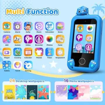 When you compare the Delighkidz Dinosaur Kids Smart Phone to other children’s toy phones, it stands out due to its superior dual-camera setup and the wide array of customization options. While many competitors offer basic functions, our product combines educational games, persistent battery life, and parental controls for a comprehensive learning tool. The unique design is not only attractive to children but also designed for safe and fun play, reinforcing its value among toy smartphones.