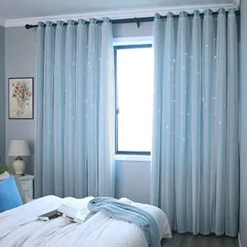 Kids Stars Blackout Curtains for Girls Boys Bedroom Living Room Window Drape Solid Blue Star Cutout Curtains Tulle Overlay Curtain Double Layer Cut Out Curtains,2 Panels,52x96 Inch