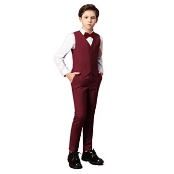 Kids Suit for Boys 4 Piece Dress Set with Vest Pants Shirt and Bow Tie Burgundy Size 2