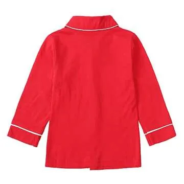 Kids Tales Girls Boys Button-Down Pajamas Set Red Long Sleeve Sleepwear