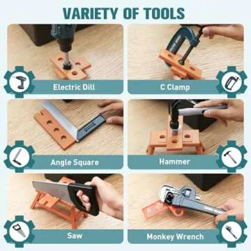 Show more Unleash the creativity of your little ones with the Kids Tool Box–Zealous 48 PCS Pretend Play Tools set! This amazing construction toy is designed for kids aged 3 to 8 years, allowing them to explore the world of DIY with realistic, hands-on play. Each tool in this comprehensive kit is crafted from high-quality ABS plastic, ensuring safety while maintaining durability for countless hours of playtime. Featuring an electric drill with 3 interchangeable bits that produce realistic drilling sounds, children can easily switch tools like a professional contractor. The included tools such as hammers, screwdrivers, goggles, a protective mask, and a variety of nuts and bolts replicate the experience of using daddy’s real toolkit!