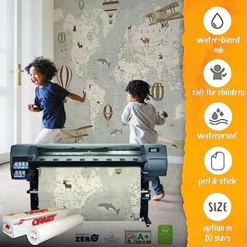 Kids World Map Wallpaper with Animals–Peel and Stick Educational Decals–Nursery Murals for Baby, Toddlers, Boys, Kids Room–Removable Waterproof Decor for Bedroom, Classroom, Playroom(94.5W x 74H)