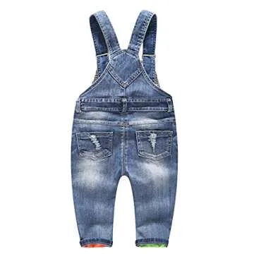KIDSCOOL SPACE Baby Boy Girl Jean Overalls,Toddler Ripped Denim Cute Workwear,Light Blue,3-4 Years