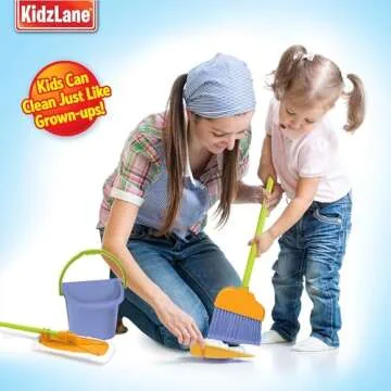 Show more The complete cleaning kit for kids is designed to spark the imagination of young children while teaching them the value of cleanliness and responsibility. This adorable set, filled with vibrant colors and realistic tools, includes a broom, dustpan, mop, and a cute wet floor sign, ensuring your little ones have everything they need for some serious pretend play! Made by reputable brand Kidzlane, this delightful kit is perfect for encouraging early learning through role-playing and teamwork. Children will enjoy sweeping, mopping, and dusting around the house, just like Mommy and Daddy!