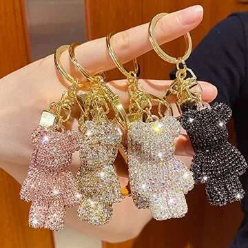 Show more Introducing the adorable Bear Pendant Keychain, your perfect companion for adding a touch of charm and style to your everyday essentials. Crafted from high-quality rhinestone and metal, this keychain is not just practical but also a fabulous accessory that enhances your personality. With an overall length of 15 cm (5.90 inches), it's the ideal size to attach to your handbag, backpack, or car keys, ensuring your keys are always within reach and making a stunning visual impact.